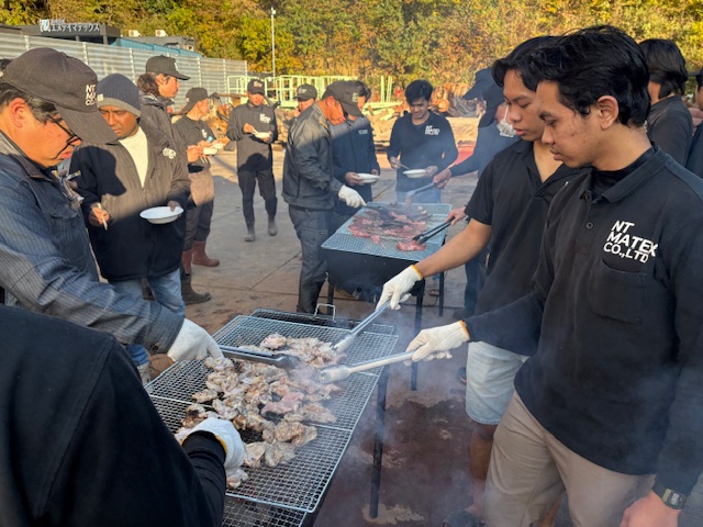 年末から年始にかけて千葉工場・沖縄工場で「新人歓迎BBQ」「忘年会」「日本文化体験(ムーチー、グリコ工場見学)」等の社内イベントを行いました。沖縄工場では技能実習生の日本文化体験として沖縄の伝統行事である「ムーチー」を体験しました。「ムーチー」は12月8日にみなで蒸し餅を食べて一年の健康を願う行事です。千葉工場ではインドネシアでもなじみのあるグリコポッキーの製造工場を見学しました。
